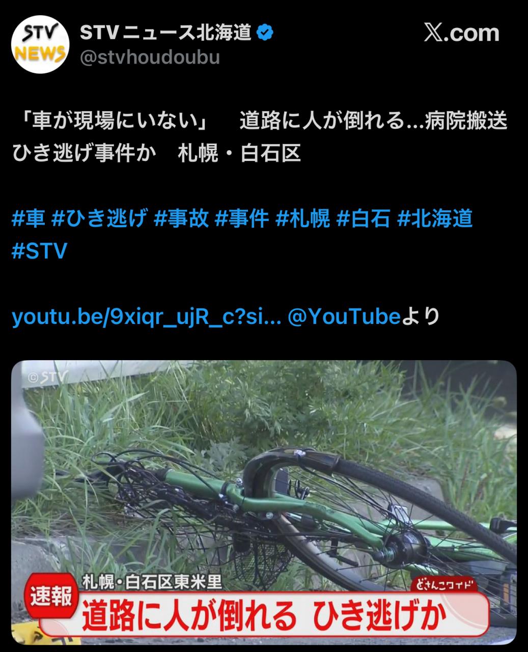 札幌市の米里エリアにて事故が発生しました。 数年前にも高校生がダンプに惹かれてしまい 死亡事故になった現場みたいです。。 また事故車両は逃亡しているそうです。 早く犯人が見つかることを願うばかりですね…。
